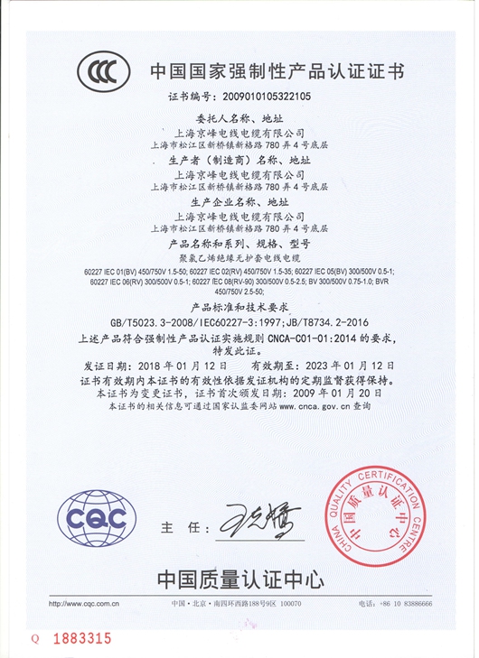 公司具有先進的生產,檢測實驗設備和配套的工裝器具,生產加工技術先進,檢測手段完善。公司生產經營的全過程嚴格按ISO9001;2000質量管理體系標準的要求實行全面的質量控制,從而使產品質量得到保證。公司生產的塑料電線獲得了國家質量認證中心頒發的國家強制性生產質量認證證書(CCC)、UL758標準。公司先后被評為“全國產品質量監督抽查合格企業”“國家監督檢查質量穩定合格企業”。公司依靠過硬的產品質量和良好的信譽贏得了廣大用戶的一致信賴。公司的質量方針是“科學管理、持續發展、追求卓越、用戶至上”,“讓用戶放心,使客戶滿意”是我們每位員工對廣大用戶最基本的承諾。